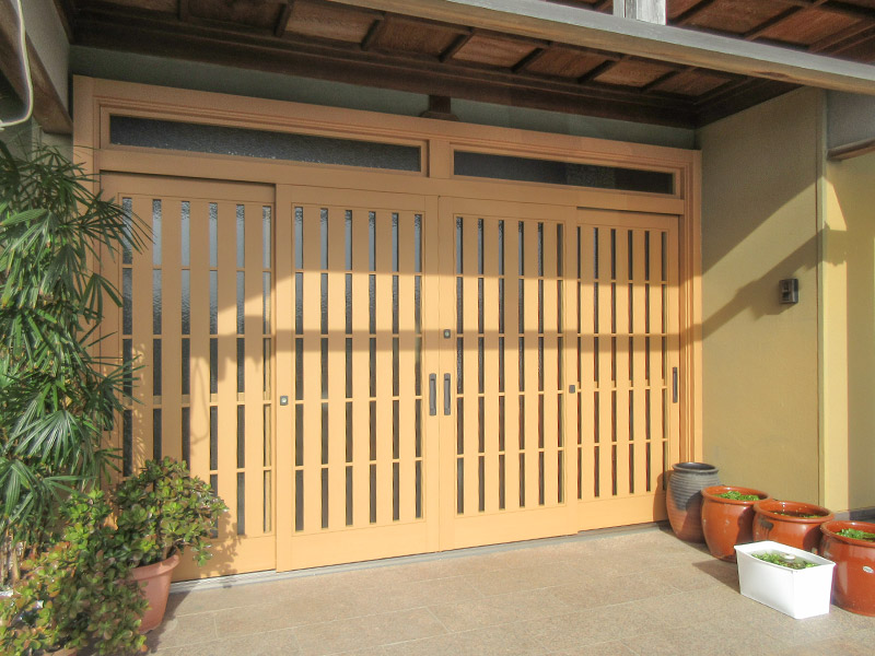 和風のお家にマッチする、4枚引き戸の玄関ドア